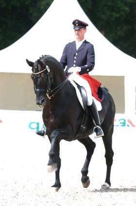 In 2009 he was awarded the Grande Prize of the Hanoverian Verband in part because of the resounding success of offspring such as the internationally successful Grand Prix gelding, Don Johnson (mv Warkant) ridden by Isabell Werth, and the Olympic team silver medalist, Diva Royal (mv Warkant), ridden by Dorothee Schneider. Don Johnson and Isabell Werth have won many top CDNs and CDIs including the Grand Prix Special at the 2012 CHIO Aachen and the 2012 Vienna Masters CDI4* Grand Prix. The 10 yr. old mare, Diva Royal, and Dorothee Schneider made their debut at the Olympic Games and impressed everyone with a final Kur score of 81.661 placing 7th in the world.